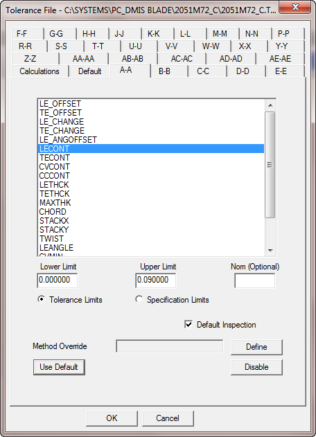 Use the individual section tabs in the Tolerance File dialog box to set the individual tolerance values that are specific to the section. All tolerances use the default values unless you specify values on the individual section tabs.