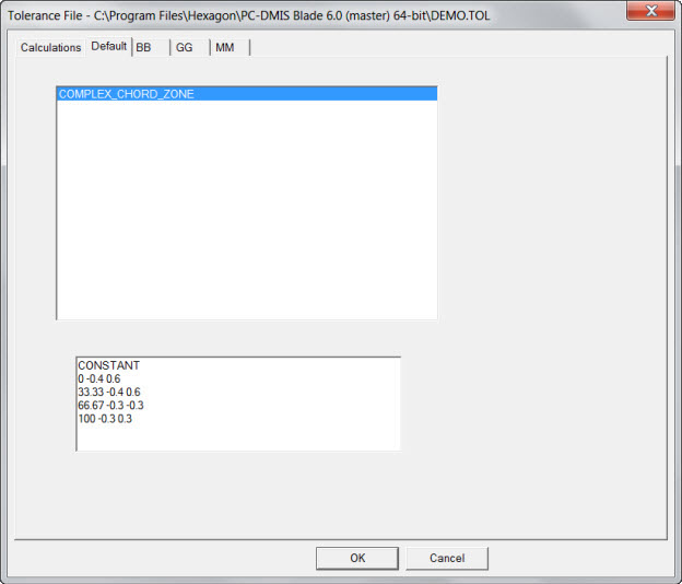 在“公差”文件中,将公差范围设置为[0.0,1.0],以使一致性正确。每个公差都进入复杂的翼弦区。