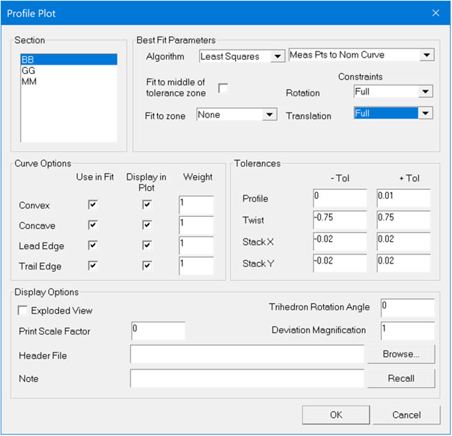 点击确认。PC-DMIS Blade 基于轮廓图选项创建绘图。