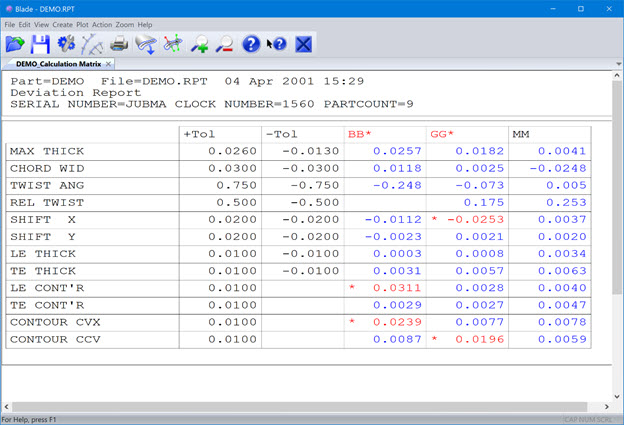 选择先前测量零件的报告,并单击打开。PC-DMIS Blade分析报告文件: