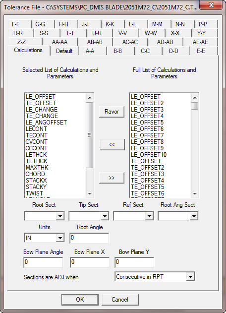 使用公差文件对话框中的计算选项卡指定可用于所有截面(默认选项卡)或单个截面(截面选项卡)的计算。