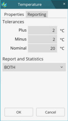 Je-li třeba, můžete změnit nominální teplotu a tolerance pro každou osu a/nebo díl v okně úprav.