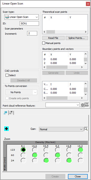 Dialogové okno Lineární otevřený sken