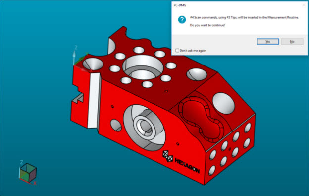 Klikněte na tlačítko Vytvořit. PC-DMIS potřebné skeny do okna úprav. Například: