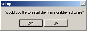 Klikněte na Ano pro pokračování, nebo na Ne pro přeskočení Frame Grabber instalace. Jste vyzváni k vložení instalačního CD.