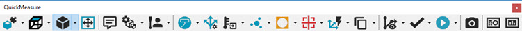 Nástrojová lišta RychléMěření Vision modeluje typický průběh operací v systému Vision. Je přístupná z nabídky Zobrazit | Nástrojové lišty | v závislosti na konfiguraci vašeho systému. Je stejná jako nástrojová lišta RychléMěření v dokumentaci PC-DMIS CMM. Informace k této nástrojové liště RychléMěření viz téma „Nástrojová lišta RychléMěření CMM“ v dokumentaci „PC-DMIS CMM“.