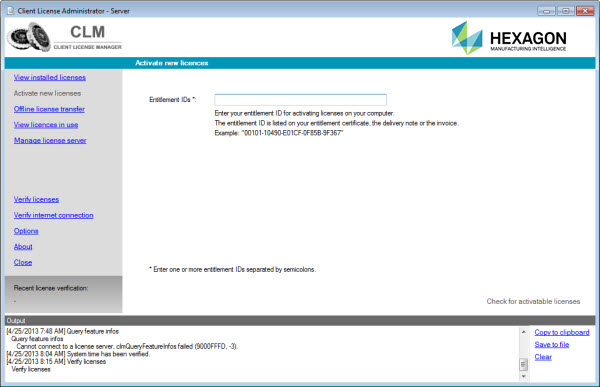 Activating other purchased software packages to be managed on the same Local License Server is called "activating new licenses". Activating new licenses is done with the CLM Administrator Server.