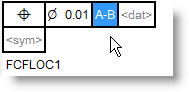 Specify the compound datum in the <dat> field of the Feature Control Frame Editor area. While the list only shows individual datums, you can type the required datum combination directly. Do this by selecting or typing the first datum's ID, a dash, and then the ID for the last datum in the combination. If your compound datum used datums A and B, it would look like this: