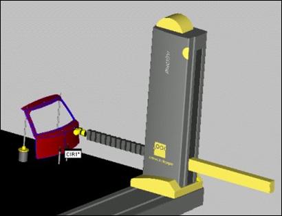 Below is a graphical example of five fixture columns attached to a car part by surface point feature types as specified in the Create/Modify Fixture dialog box. The Graphic Display window displays the graphical elements that have been selected.