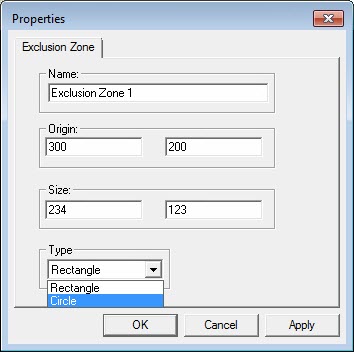 Properties dialog box - Exclusion Zone
