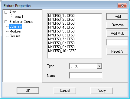 Fixture Properties dialog box - Columns