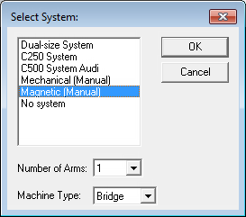 The File | Set System menu option opens the Select System dialog box. You can use this dialog box to select the Flexible Fixturing system from the available systems in the list box.