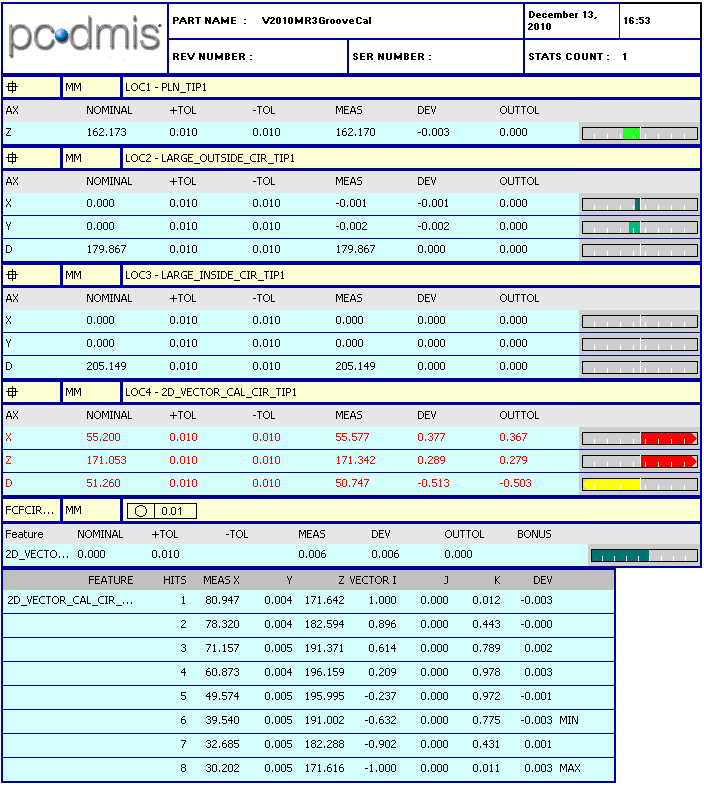 PC-DMIS Report with Dimensioned Calibration Measurement Routine