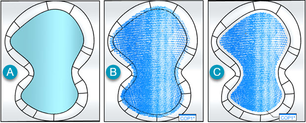 C - Clean operation applied with a Max Distance of 1mm, and a CAD Offset of 1mm