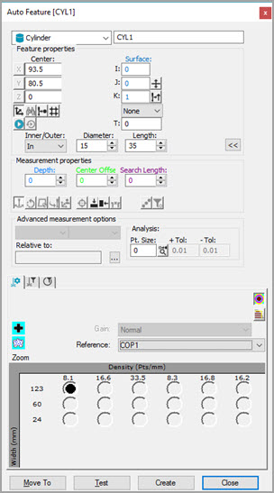 Manually enter all of the theoretical information for X, Y, Z, I, J, K, Inner/Outer value, diameter, length, depth, and other parameters.