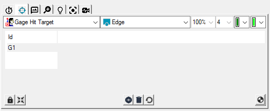 The following parameters appear in the column headings of the target list in the Hit Targets tab when measuring features using the Gage measuring method (for available measuring methods, see "Measuring Features Using a Vision probe"):