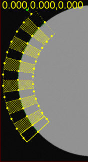 The Hit Target Test button tests the automatic Target Edge detection for the currently selected target or targets. PC-DMIS Vision displays any detected points in the Vision tab of the Graphic Display window. |