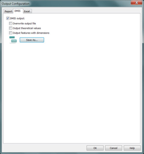 Finestra di dialogo Configurazione output - Scheda DMIS