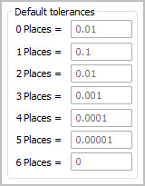 Queste caselle consentono di impostare diverse tolleranze predefinite che saranno applicate da PC-DMIS quando si definisce un valore nominale con cifre decimali da 0 a 5.