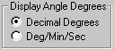 La sezione Visualizza gradi angoli consente di visualizzare dimensioni di angoli utilizzando gradi decimali o in base a grado/minuto/secondo. È sufficiente selezionare l'opzione desiderata. Gli assi di posizione PA e le dimensioni dell'angolo verranno modificati in base all'opzione selezionata.
