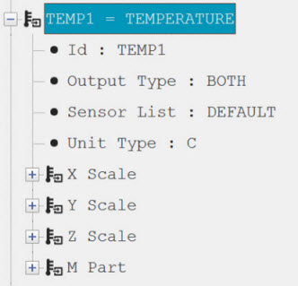 Nell'elenco Estensione, selezionare la temperatura di X, Y, Z o M (pezzo). Selezionare l'opzione come necessario per generare un'espressione appropriata.