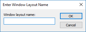 Salva - Questa icona visualizza la finestra di dialogo Immetti nome layout finestra che consente di salvare la posizione corrente e le dimensioni delle finestre aperte, degli Editor o delle barre degli strumenti con il nome del layout desiderato:
