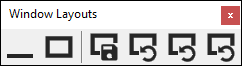 Ripristina layout salvato - Questa icona ripristina il layout memorizzato. Le finestre, gli editor e le barre degli strumenti saranno ripristinati nelle posizioni salvate. Passando con il puntatore del mouse sull'icona sarà visualizzato il nome del layout memorizzato.