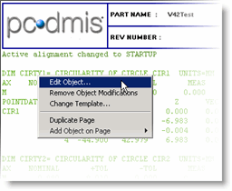Fare clic con il pulsante destro del mouse sul testo del rapporto oppure sullo spazio bianco alla fine della finestra Rapporto e selezionare la voce del menu Modifica oggetto quando