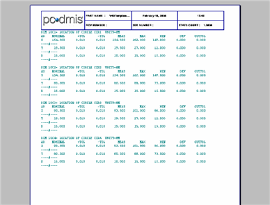 PC-DMIS genera sempre una nuova intestazione per ogni emissione del rapporto che segue il comando STAMPA/RAPPORTO.