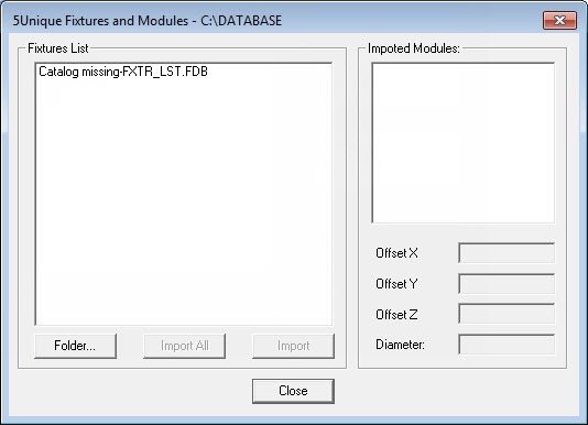 Selezionare l'opzione del menu File | Importa | Five Unique per importare i dati del sistema di attrezzaggio manuale.