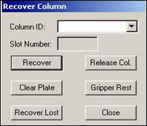 L'opzione del menu Operazione | Recupero colonne apre la finestra di dialogo Recupera colonna. Questa finestra di dialogo permette di riportare una colonna nella corretta posizione di deposito all'interno del magazzino. Questa funzione è utile se, in caso di errore o caduta della macchina, una delle colonne non è posizionata correttamente. PC-DMIS può così memorizzare di nuovo la posizione della colonna in questione.