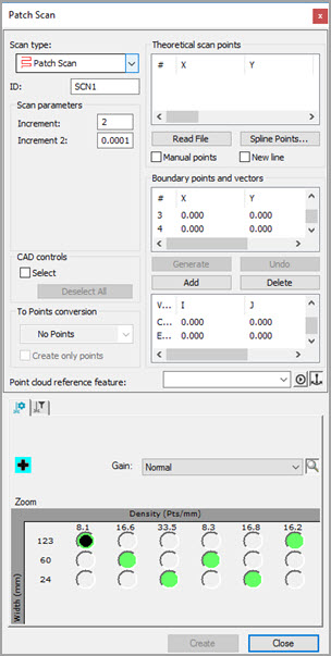 Il metodo Scansione Patch effettua la scansione della superficie del pezzo in base ai parametri della scansione. Mentre esegue le linee di scansione, il tastatore rimane sempre all'interno del piano di taglio. Usa il valore dell'incremento per determinare la distanza tra i punti su ogni linea. Quando raggiunge il bordo alla fine di una linea, la scansione si posiziona sulla linea seguente, spostandosi di un valore pari a Incremento 2 e dà inizio alla scansione della nuova linea muovendosi in direzione opposta. La figura che segue descrive questo processo.