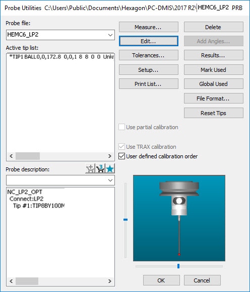 Aggiungere un tastatore a sfera nella finestra di dialogo Utility tastatore facendo clic sul pulsante Modifica. Al termine, fare clic sul pulsante OK.