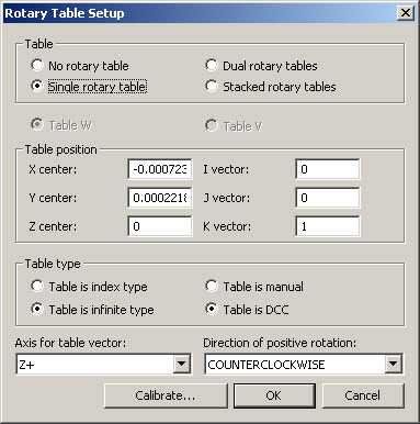 Selezionare Modifica | Preferenze | Impostazione tavola rotante e accertarsi di aver selezionato l'opzione Tavola rotante singola e aver cancellato gli scostamenti se si calibra da zero come mostrato sotto.