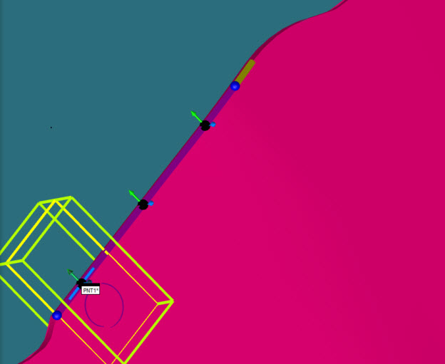 단계 - 이 옵션은 생성중인 특성 사이에서 선택된 곡선 또는 곡선들을 따라 간격을 선택할 수 있게 한다.