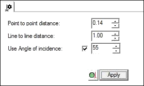 입사각 사용 - 이 옵션은 어떤 최대 허용된 각이 스캔을 위해 사용되는지를 지정한다. 이 값은 스캔하는 동안 나쁜 조건 (표면 반사, 도형 등)을 피할수 있게 돕는다. 이 각도는 광선과 표면이 법선 벡터 사이의 각도이다. 위쪽과 아래쪽 화살표를 사용할때 허용된 값은 0 mm 와 80mm 사이이다.