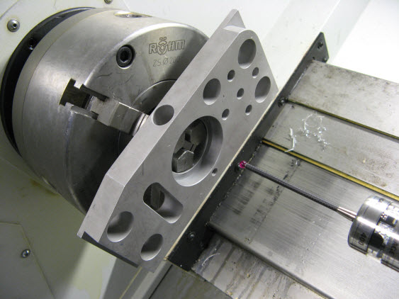 通过大的中心洞来将测试块装到车床卡盘上。