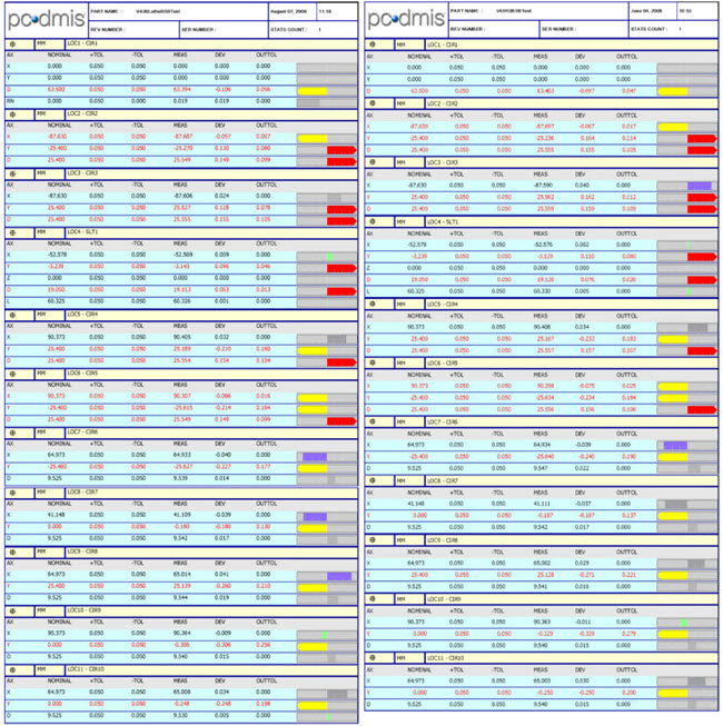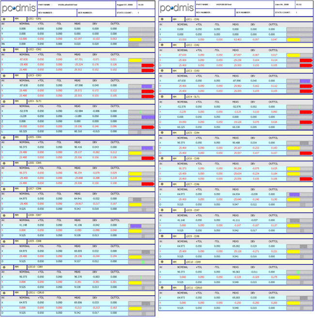 两个圆测量比较 - 左边是Siemens车床结果,右边是CMM结果