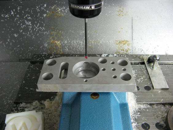 然而应注意的是,在恰当的 XYZ 轴机器(如 Fanuc 磨床),3D 运动将在一直在线不是弧上的点做矢量。但对于小范围逼近距离的测量运动,错误是不显著的。直的路线形成电弧还意味着不能总是依靠碰撞检测。当然,对于不要求主轴运动的测量运动,不会出现这样的测量错误,但为在以上零件中达到此目的,需要对从铣床复制过来的测量例程做一些修改。