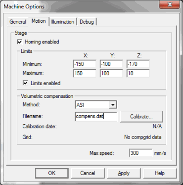 通过运动选项卡,您可以定义机器的移动参数。您的技术服务人员已经在系统的安装过程中设置了运动选项。