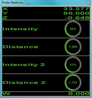 厚度扫描对话框打开或执行期间,PC-DMIS 在“测头读数”窗口中显示这些值。