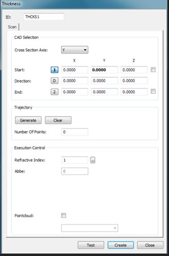 3. 打开厚度扫描对话框(插入 | 扫描 | 厚度)。