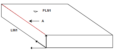 A - 构造的从一个线特征 (LIN1) 投影至一个平面特征的 (PLN1) 的线