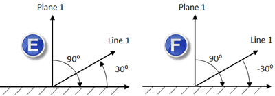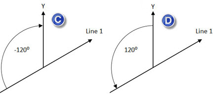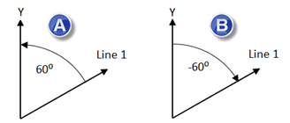 如果计算的角度为逆时针方向,PC-DMIS 将给出正角。如果计算的角度为顺时针方向,PC-DMIS 将给出负角。