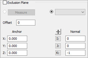 Select an existing plane (a plane that already exists in the measurement routine) from the Exclusion Plane Feature list. The Anchor and Normal (vector) fields update accordingly.
