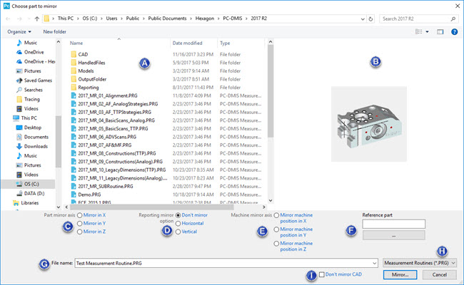 Click the Mirror button to open the Save mirrored part as dialog box with the file name of the measurement routine that you selected to mirror.