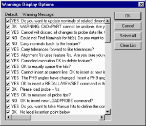 The Clear List button clears all the check boxes for all items, thereby returning PC-DMIS to its default mode of displaying all the warning messages.