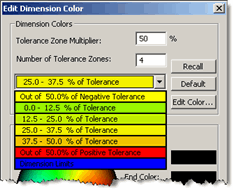 Method 1 - Select each tolerance zone one at a time from the tolerance zone drop-down list, and click the Edit button to set a specific color for each zone.