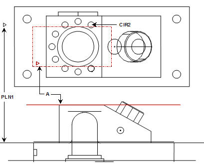 A - Plane constructed parallel to the first feature, a plane (PLN1) and through the second feature, a circle (CIR2)