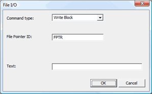 The Insert | File I/O Command | Writing Commands | Write Block menu option inserts a command into the Edit window that causes a block of text to be output to a disk file upon execution. Use expression syntax to output the variables and measurement routine information to file. Unlike the write line command, write block does not append a carriage return at the end.